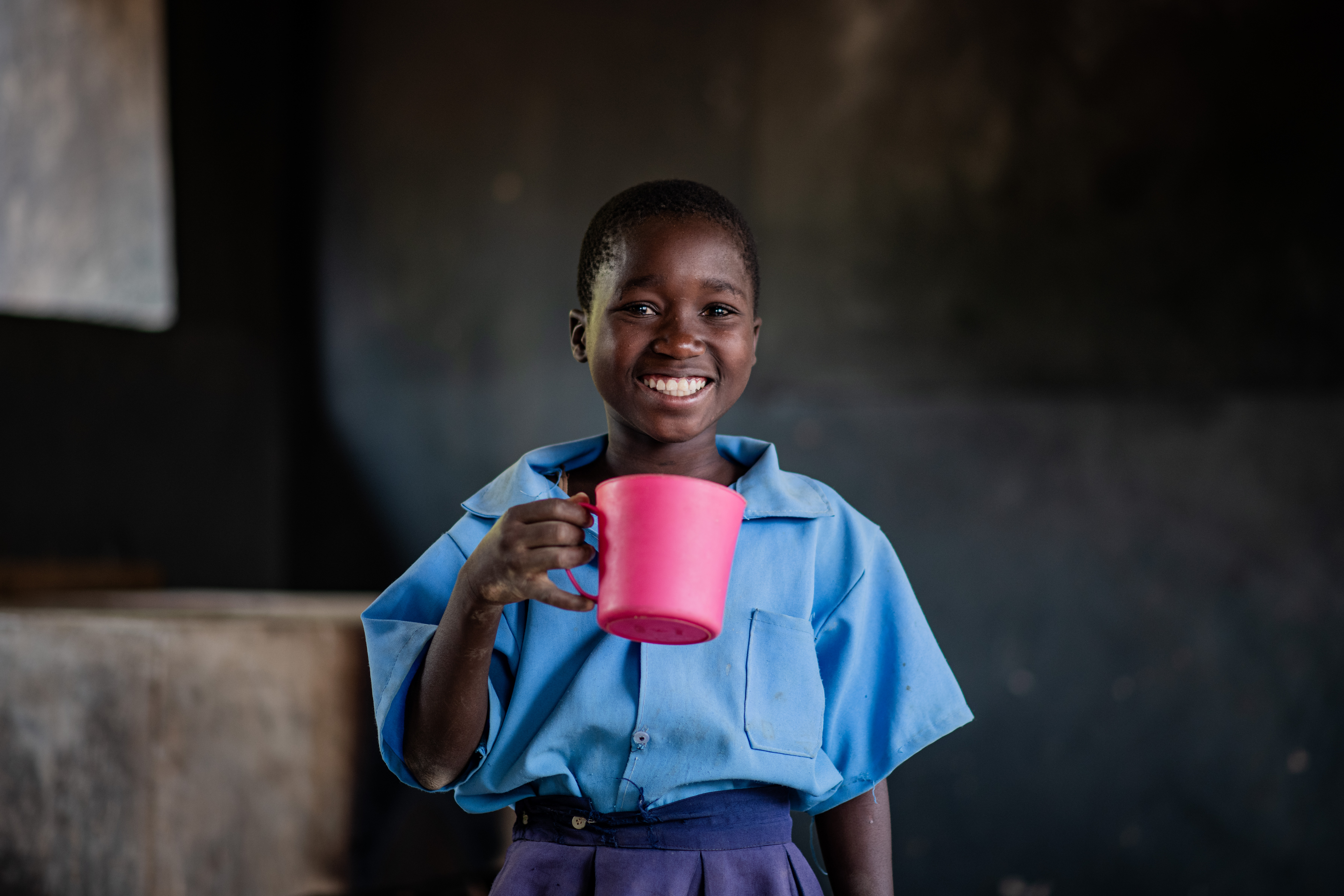 Bertha, 11, enjoys Mary’s Meals at school in Zambia.